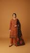 MTJ Orange Kurta Pajama Printed Black Dupatta Contrasing Winter Women Clothes