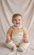 Adorable Cozy Yellow Winter Romper for Baby Girls with a cute contrasting collar. Soft, warm, and practical for easy diaper changes.